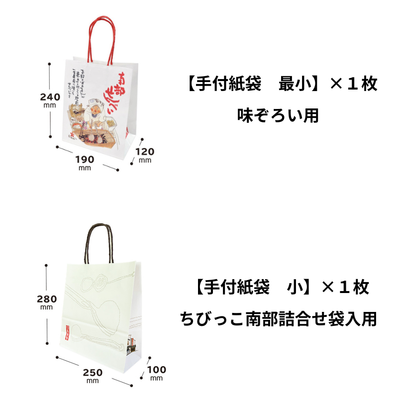 | 内容量 | 7種3箱7袋 各1箱/味ぞろい(10種10枚)・野のあそび(9種18枚)・チョコ南部(10個)、各2袋/Barナンブ(50g)・割りせん&柿ピー醤油味(35g)・割りしみチョコせんべい(70g)、1袋/ちびっこ南部詰合せ袋入(4種38枚) 各1枚/手付紙袋小、手付紙袋最小 |