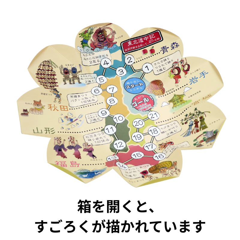 八角形の箱を開くと、すごろくが描かれています。