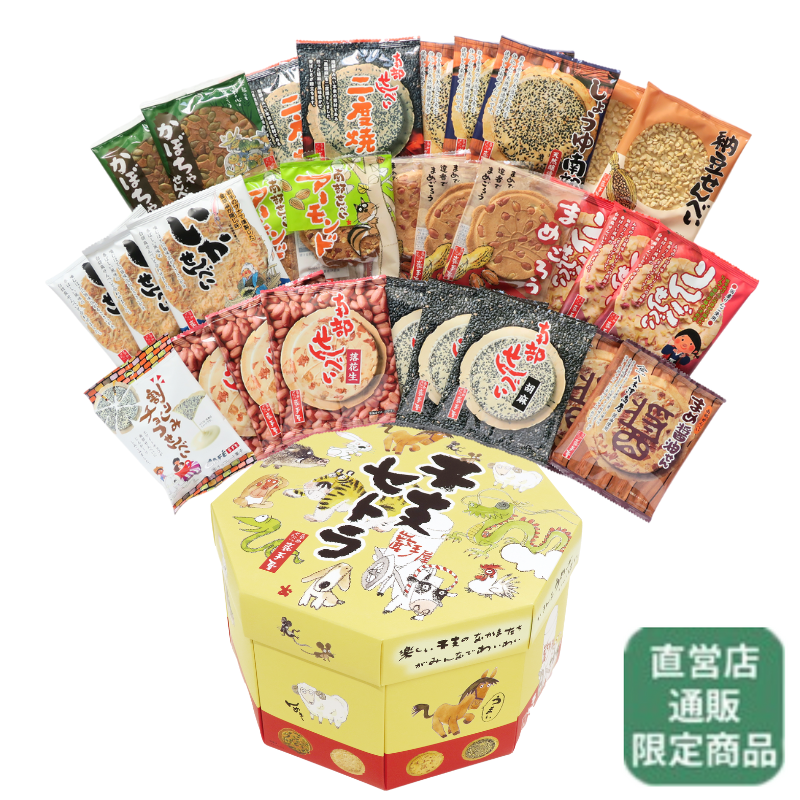| 内容量 | 12種28枚1袋 各3枚/南部せんべい(胡麻)・南部せんべい(落花生)・いかせんべい・りんごせんべい・まめごろう・しょうゆ南部(胡麻)、各2枚/まめ醤油せん・二度焼ごま・かぼちゃせんべい・南部せんべい(アーモンド)・納豆せんべい、1袋/割りしみチョコせんべい(20g) |
